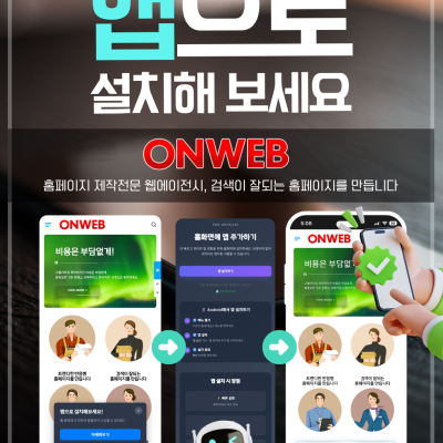 [온웹] 앱으로 설치해 보세요 !!고퀄리티로 제작하지만 비용은 부담없게!! 검색이 잘되는 홈페이지를 만듭니다ONWEB.CO.…