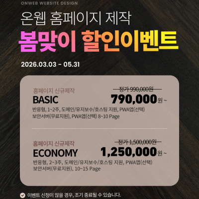 온웹 봄맞이 할인이벤트* 이벤트 신청이 많을 경우 조기 종료될 수 있습니다.